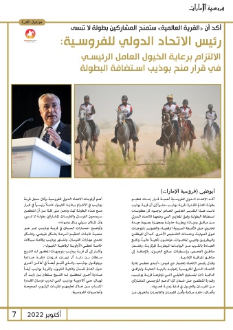 منـح هـذه البطولـة لهـا ،ونحـن عـى ثقـة مـن أن المنظمـن أكــد الاتحــاد الــدولي للفروســية أهميــة قــرار إســناد تنظيــم