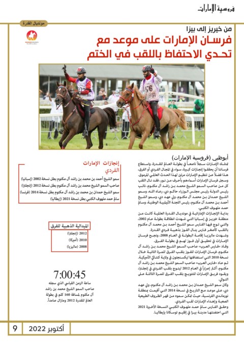 الفردي تمتلــك الإمــارات ســجلاً ناصعــاً في بطولــة العــالم للقــدرة ،واســتطاع