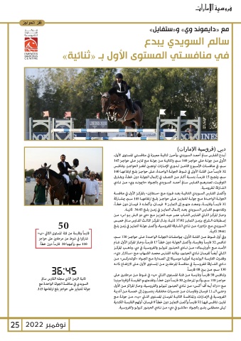 110سم ،وأتمهما 20فارساً دون خطأ. سـم ،في منافسـات الأسـبوع الثامـن لـدوري الإمـارات لونجـن لقفـز الحواجـز ،وتنافـس