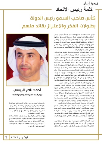 حصـد الألقـاب والبطـولات. صاحــب الســمو رئيــس الدولــة في رياضــات الفروســية المتعــددة،