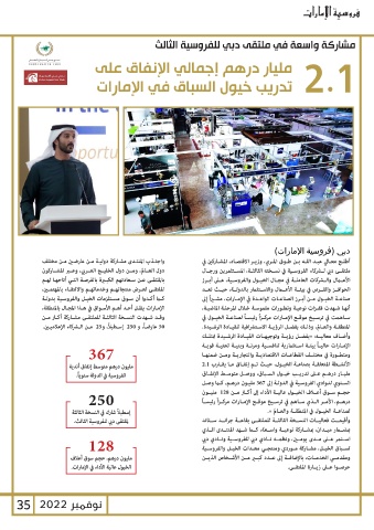 250 مليـار درهـم عـى تدريـب خيـول السـباق ،ووصـل متوسـط الإنفـاق