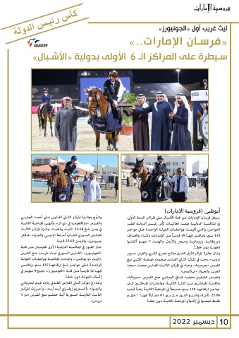 جــوردون» والزمــن 22:62ثانيــة. 110سـم ،وتنافـس فيهـا 19فارسـاً مـن الإمـارات ،وكنـدا ،والعـراق،