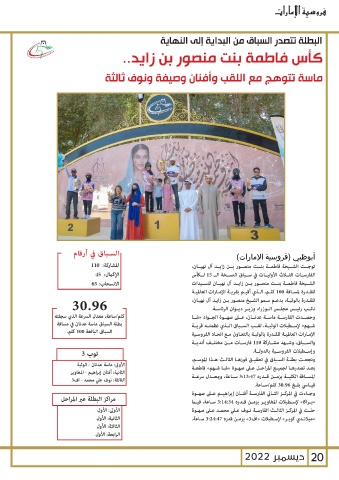السباق البالغة 100كلم. والســباق ،وشــهد مشــاركة 110فارســات مــن مختلــف أنديــة