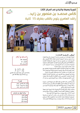 ساعة ،الزمن الذي سجله البطل راشد العامري ونظمـت السـباق قريـة الإمـارات العالميـة للقـدرة بالوثبـة ،بالتعـاون مـع