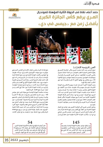 وبزمـن 44:74ثانيـة ،ثـم الفـارس عبـد اللـه حميـد ثالثـاً بالجواد الجــولات أنديــة الفروســية في الإمــارات ضمــن بطولاتهــا الدوليــة