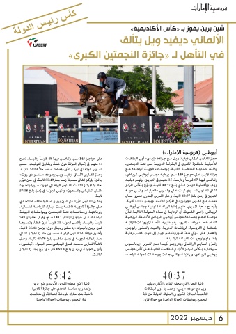 عـى حواجـز 145سـم ،وتنافـس فيهـا 48فارسـاً وفارسـة ،نجـح أبوظبي (فروسية الإمارات)