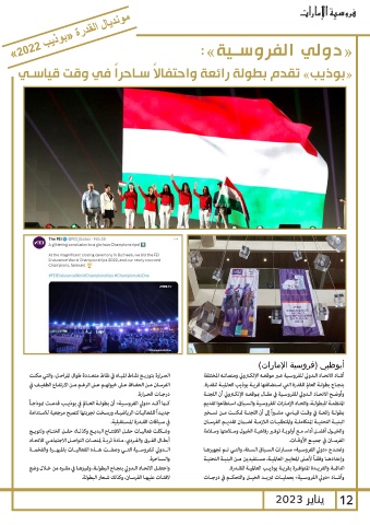 كـا أكـد «دولي الفروسـية» أن بطولـة العـالم في بوذيـب قدمـت نموذجـاً وأوضـح الاتحـاد الـدولي للفروسـية في مقـال بموقعـه الإلكـروني أن اللجنـة