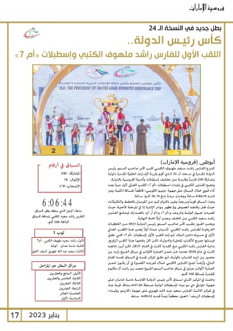 البالغة 160كلم. انفــردت خيــول الوثبــة والريــف و«أم »7و«أم آر أم» بالصــدارة ،ليندفــع الفــارس