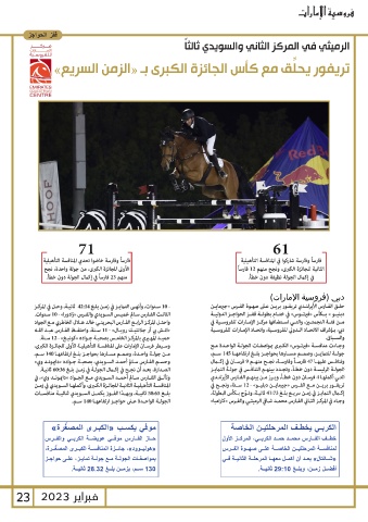 وتألـق الفـارس سـالم أحمـد السـويدي مـع الجـواد «دايمونـد وي» ،في وتنافـس عليهـا 47فارسـاً وفارسـة ،نجـح منهـم 9فرسـان في إكـال