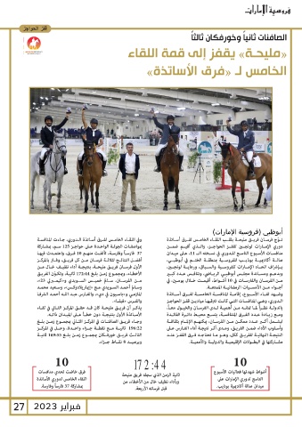 أفضــل النتائــج لثلاثــة فرســان مــن كل فريــق ،وفــاز بالمركــز دوري الإمــارات لونجــن لقفــز الحواجــز ،والــذي أقيــم ضمــن