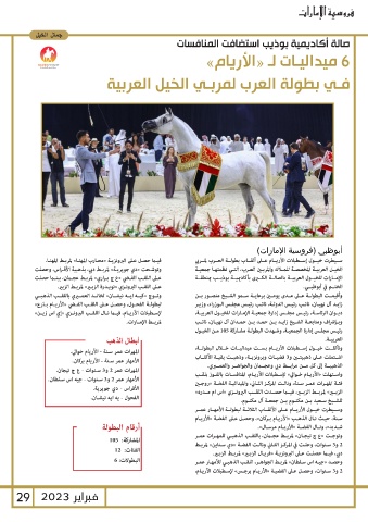 عـى اللقـب الفـي «ع ج بـراري» لمربـط عجـان ،بينـا حصلت ســيطرت خيــول إســطبلات الأريــام عــى ألقــاب بطولــة العــرب لمــربي