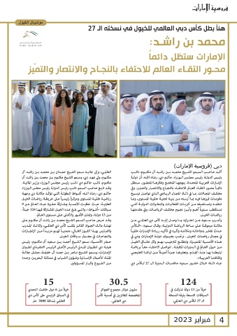 والنجاحـات في مضـار سـباقات الخيـل. حـدث نفخـر بنجاحاتـه ومكانتـه وأثـره في تأكيـد ريـادة الإمـارات عالميـاً