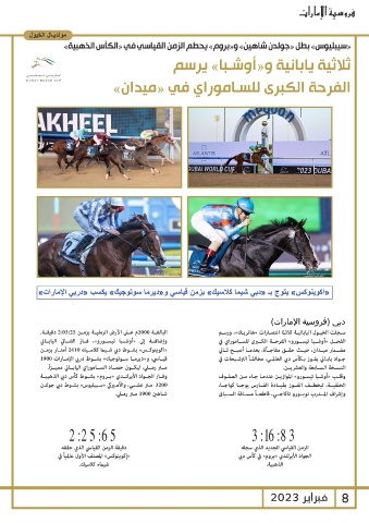 «اكوينوكـس» بشـوط دبي شـيما كلاسـيك 2410أمتـار بزمـن سـجلت الخيـول اليابانيـة ثلاثـة انتصـارات «هاتريـك» ،ورسـم