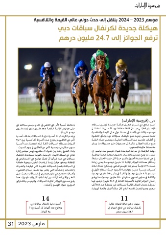 والخدمـات والمنشـآت التـي يفخـر بهـا مضـار ميـدان العالمـي». وسـتقفز معـدلات الجوائـز الماليـة 11مليـون درهـم ،مـا يعنـي زيـادة