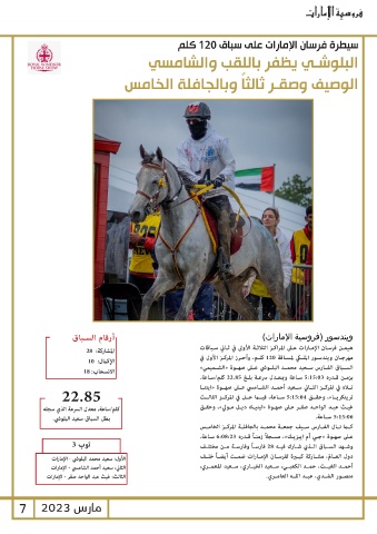 الأول :سعيد محمد البلوشي -الإمارات وشـهد السـباق الـذي شـارك فيـه 28فارسـاً وفارسـة مـن مختلـف