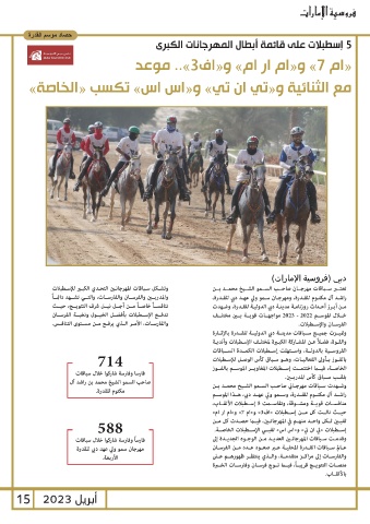الفروســية بالدولــة ،واســتهلت إســطبلات الكمــدة الســباقات