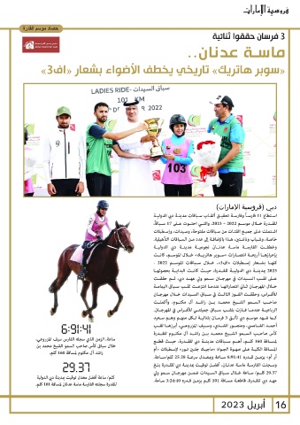 للأفــراس ،وحققــت الفــوز الثالــث في ســباق الســيدات خــال مهرجــان