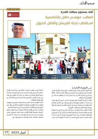 دبي ،رئيـس المجلـس التنفيـذي ،وذلـك لزيـادة روح التنافسـية بـن العـام لنـادي دبي للفروسـية ،أن موسـم سـباقات القـدرة 2022 - 2023