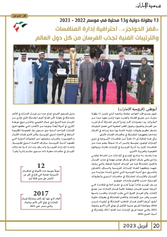 الفرسـان هـا الشـيخ عـي جـال النعيمـي ،والفـارس مـوفي عويضـة طـوى موسـم قفـز الحواجـز صفحـة برنامجـه الـذي تضمـن 13بطولـة