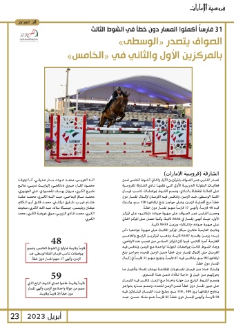 ارتفاعهـا 90سـم ،وتنافـس فيـه 67فارسـاً ،ونجـح منهـم 31فارسـاً في إكـال