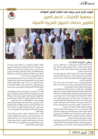 الأوسـط ،ودولـة الإمـارات خصوصاً التـي تعتبر وجهة مفضلـة للصينيين للجمعيـة ،وفـد الجمعيـة الصينيـة للخيـول العربيـة.