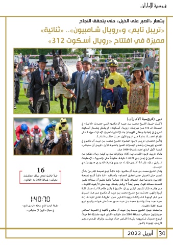 دقيقة الزمن الذي سجله «تريبل تايم» وتألــق الحصــان «تريبــل تايــم» المملــوك للشــيخ محمــد بــن عبيــد آل مكتــوم في