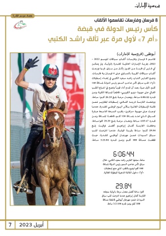 «أم »7لقـب سـباق كأس صاحـب السـمو رئيـس الدولـة لمسـافة 160