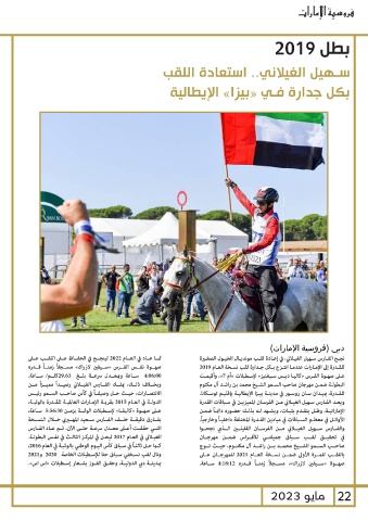 ثمــا عــاد في العــام 2022لينجــح في الحفــاظ عــى اللقــب عــى دبي (فروسية الإمارات)