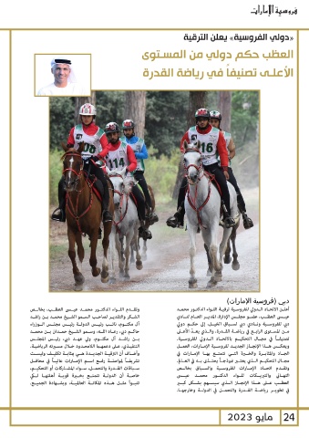 التنفيـذي ،عـى دعمهـا اللامحـدود خـال مسـرته الرياضيـة. مــن المســتوى الرابــع في رياضــة القــدرة ،والــذي يعــ ّد الأعــى