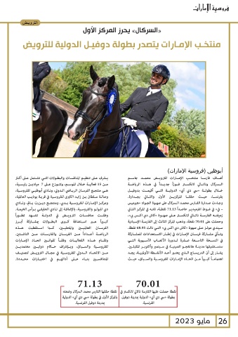 للفروســية والســباق ،وبــإشراف حــكام دوليــن معتمديــن وتــأتي مشــاركة فرســان الإمــارات في إطــار الاســتعدادات للمشــاركة