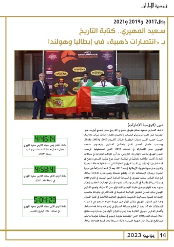 ساعة الزمن الذي سجله الفارس سعيد المهيري بمدينـة بيـزا الإيطاليـة في إقليـم توسـكانا ،ليقـود فرسـان الإمـارات لتحقيـق إنجـاز