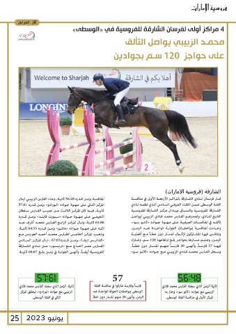 المنافسـة بزمـن قـدره 56:48ثانيـة ،وعـاد الفارس الزبيبـي لينال الشارقة (فروسية الإمارات)