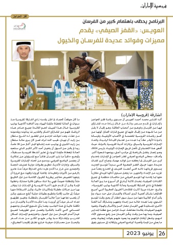 ق ّيمـة يمكـن أن تقـدم عليهـا أنديـة الفروسـية في الإمـارات لمـا يتوافـر معهـا بمـا يقدمـه لهـا الموسـم الصيفـي مـن منافسـات منتظمـة في جميـع