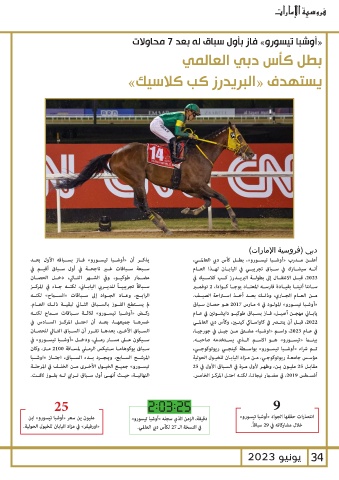 يذكــر أن «أوشــبا تيســورو» فــاز بســباقه الأول بعــد دبي (فروسية الإمارات)