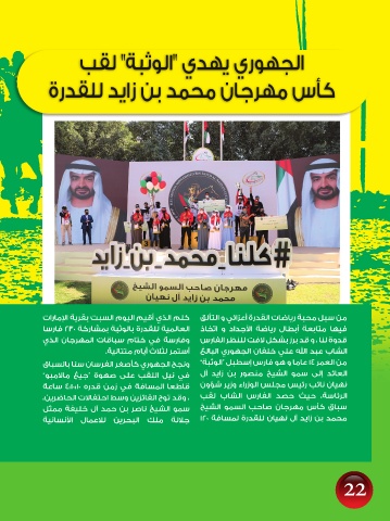 ،وقد توج الفائزين وسط احتفالات الحاضرين، محمد بن زايد آل نهيان للقدرة لمسافة 120