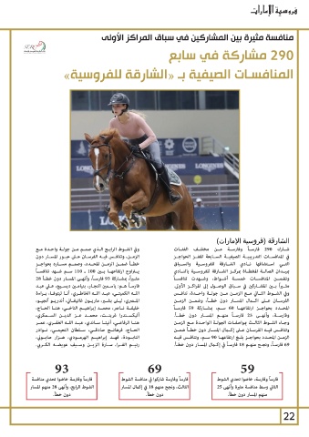 مثـراً ،بمشـاركة 93فارسـاً ،وأنهــى المسـار دون خطـأ 28 التــي اســتضافها نــادي الشــارقة للفروســية والســباق