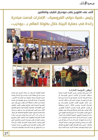 وأوضــح أن دولــة الإمــارات ترســخ جهودهــا في حمايــة ســباقات القــدرة في الاتحــاد الــدولي للفروســية ،أن