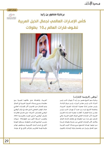 29 حـول العـالم ،وإبـراز دور واهتـام دولـة الإمـارات بالخيـول