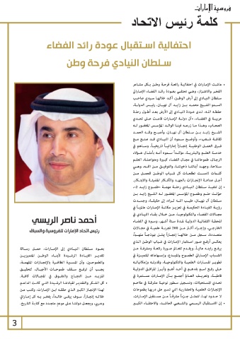 بعــود ســلطان النيــادي إلى الإمــارات ،حمــل رســالة حفظـه اللـه ،لـدى عـودة النيـادي إلى الأرض بعـد أطـول رحلـة