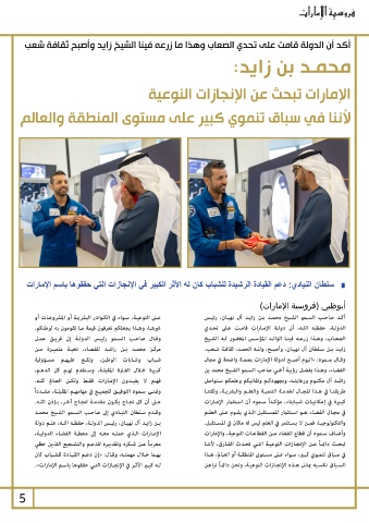 الإمـارات الـذي حملـه معـه إلى محطـة الفضـاء الدوليـة، في مجـال الفضـاء هـو اسـتثمار للمسـتقبل الـذي يقـوم على العلـم