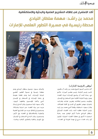التــي بدأهــا المؤسســون ونكملهــا اليــوم». دبي ،رعــاه اللــه ،أن برنامــج الإمــارات لــرواد الفضــاء