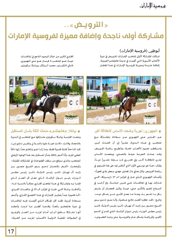 في البطــولات المحليــة الدوليــة لاكتســاب المزيــد مــن الخــرة». الكبــر وللرياضــة بشــكل عــام والفروســية عــى وجــه الخصــوص».