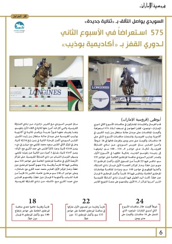 بوذيـب للفروسـية عـى ميـدان صالـة سـلطان بـن زايـد الكـرى. الإمـارات «لونجـن» لقفـز الحواجـز في نسـخته الــ 575 ،12اسـتعراضاً،