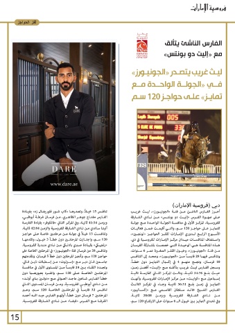 15 وفي تحـدي التمايـز بـن خيـول الــ 6سـنوات عـى الارتفـاع 120سـم،