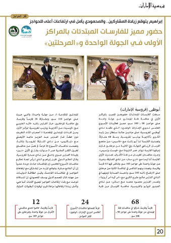 وفي منافســة المرحلتــن ،حــاز الفــارس راشــد خالــد الجنيبــي ســجلت الفارســات المبتدئــات حضورهــن المميــز ،بالمراكــز