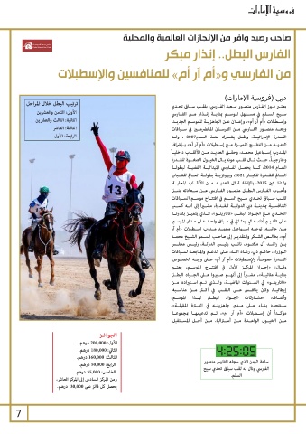 الخامس 35,000 :درهم. لقــب ســباق تحــدي ســيح الســلم في افتتــاح موســم الســباقات