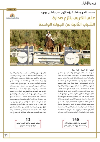 مـع «سـابرينا» مـن نـادي أبوظبـي للفروسـية ،ومحمـود محمـد الثانيــة بمواصفــات الجولــة الواحــدة عــى الارتفــاع ذاتــه.
