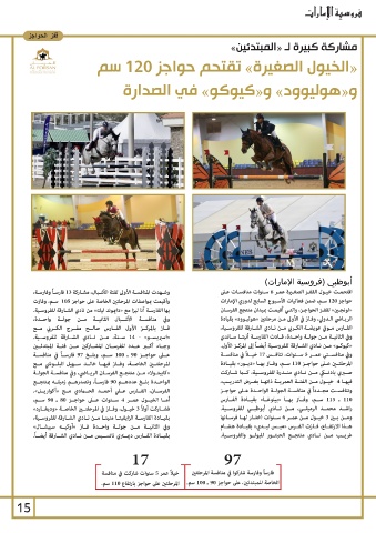 الواحــدة بلــغ عددهــم 90فارســاً ،وتصدرهــم زميلــه بمنتجــع المرحلتــن عــى حواجــز 110ســم ،وفــاز بهــا «ديــور» بقيــادة