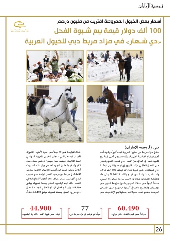 تمــت المزايــدة عليهــا ،مــن المليــون درهــم لعــدد مــن حقـق مـزاد مربـط دبي للخيول العربيـة نجاحاً كبيراً ،وشـهد أحد