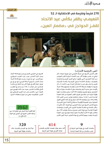 خيل ًا شارك بها الفرسان والفارسات خلال ألف درهم جوائز خصصت للفائزين وأصحاب منافسات أقيمت في بطولة العين الدولية إلى